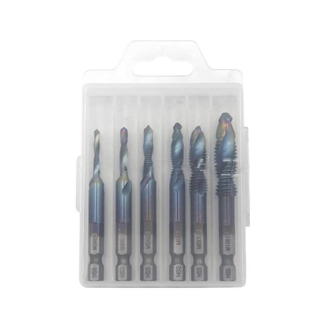 Disse borekranene er laget av høyhastighetsstål, som er slitesterk og rustbestandig. Med denne boretappkranen brukes spiralkanten til å kutte nye gjenger eller reparere skadede. Egnet for tre, aluminium, jern, etc.