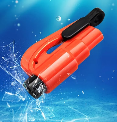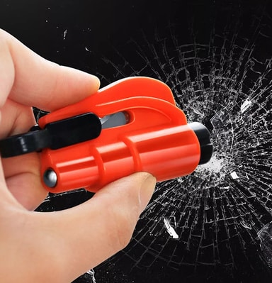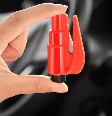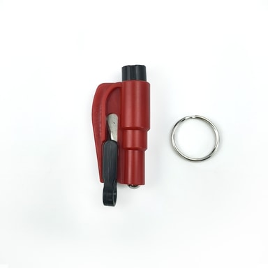 Smart nøkkelring med verktøy for nødsituasjoner når du må ut av et kjøretøy ved en ulykke. Belteklipperen kan brukes hvis sikkerhetsbeltet sitter fast. Vindusknuseren brukes hvis det ikke er mulig å åpne bildøren.