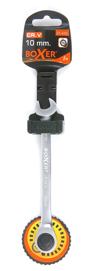 Ringnøkkel 10 mm med skrallefunksjon I CrV-stål Med skralle i ringen og med omskifter for hurtig endring av høyre- og venstredreiing. Skralle med 72 tenner.