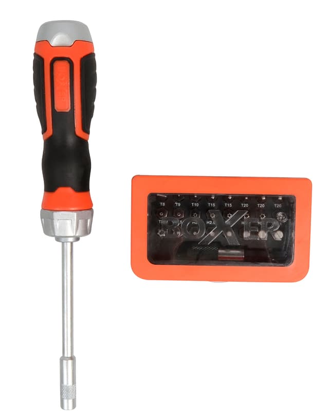 Sett med 1 stk. 240 mm skrutrekker med skralle og 1 stk. bitssett med 31 deler