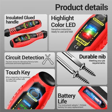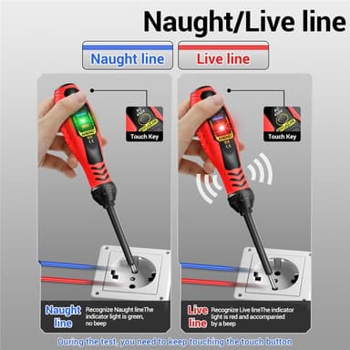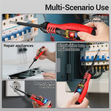 【Multifunksjonstesting】Kan oppdage høyspenning, identifisere fase-/nøytralledere og registrere berøringsfri spenning (NCV) for omfattende elektrisk testing.