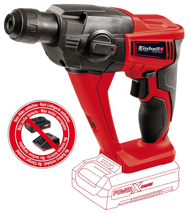 Batteridrevet borhammer med kraftig motor, metallgirkasse og pneumatisk hammermekanisme for uanstrengt skruing, boring og slagboring, selv i betong. Universal SDS-Plus-borchuck for hurtig tilbehørsskift. Solo - batteri og lader kjøpes separat.