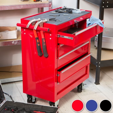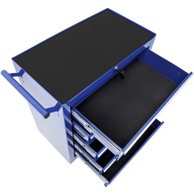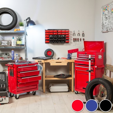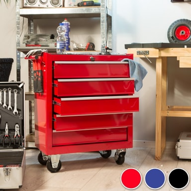 Leter du etter en egnet plass for dine verktøy? Med TecTake verktøyvogn har du alt lett for hånden når du behøver det! Uansett om du har den i hobby- eller proffverkstedet, så oppfyller verktøysvognen med sine 5 generøse og låsbare, kulelagrede kasser alle behov. Låsen forhindrer at kassene forsvinner ut ved forflytning og beskytter mot uautorisert tilgang. Dessuten har den pulvermalte verktøysvognen sklisikre matter i kassene og på hylleplanet. Fire stabile hjul muliggjør mobil bruk og forenkler forflytningen. Klikk hjem verktøysvognen din allerede i dag. Den kommer til å være en tro tjener i mange år.