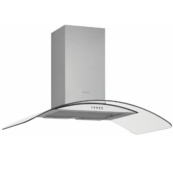 Vegghengt ventilator med buet glass for den klassiske stilen. 60 cm bredde, stålfarge. Kapasitet 189-253 m3/t, og lydnivå 55-61 db.