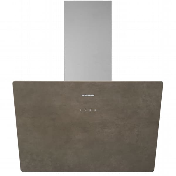 Vegghengt ventilator med ripefri steinfront, grå med stål skorstein, 80 cm, kapasitet 212-736 m3/t, lydnivå 40-59 dB, energiklasse A