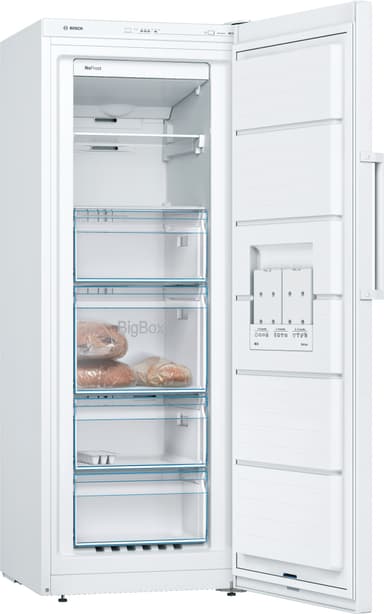 GSN29VWEP: En elegant, hvit 200L Bosch-fryser med NoFrost-teknologi, VarioZone-fleksibilitet og en effektiv SuperFreeze-funksjon.Les mer om produktet