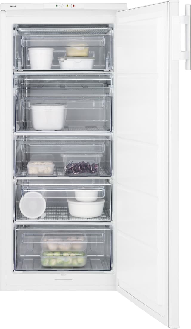 Oppbevar matvarene dine i fryseren fra Electrolux. Den har en kapasitet på 187 liter, drives stillegående og kommer med FastFreeze-funksjon.