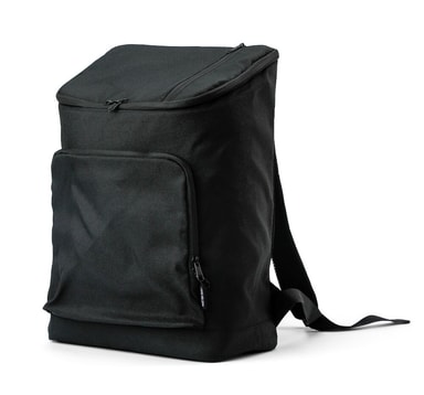 Romslig kjøleryggsekk med en større lomme foran og en mindre lomme på toppen av sekken. Laget av resirkulert PET. Størrelse: 30x15x41 cm, 17 liter Farge: Svart