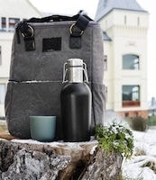 KjøleryggsekkStilig ryggsekk med kjølebag i skikkelig kanvas, stort hovedrom og tre mindre lommer for tilbehør.