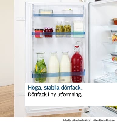 • Ekstra stabile dørhyller: Ekstra høye og fleksible for mer plass og stabilitet.