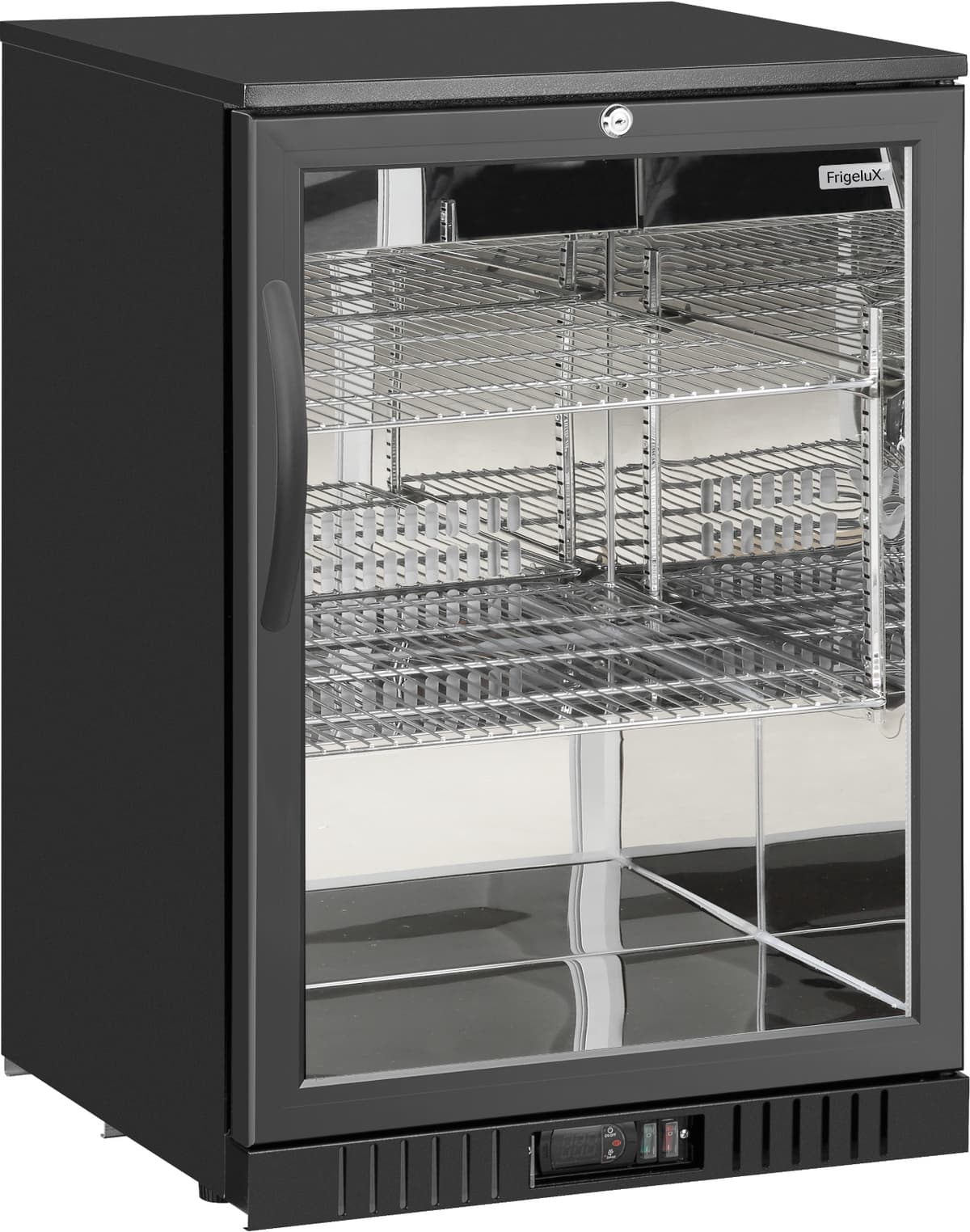 FrigeluX barkjøleskap AB130MIR har en romslig kapasitet på 102 l med 2 hyller, justerbar temperatur, et praktisk LED-lys og allsidige plasseringsmuligheter, perfekt for barer, restauranter, treningssentre og andre virksomheter.Les mer om produktet