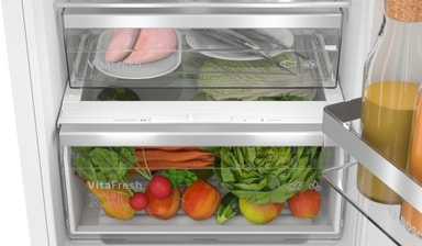 Det romslige VitaFresh XXL <0°C> systemet gir deg ideell oppbevaring av ferskmaten din. Det holder temperaturen lavere for kjøtt og fisk, og det er en egen, klimakontrollert skuff for å holde frukten og grønnsakene dine virkelig ferske.