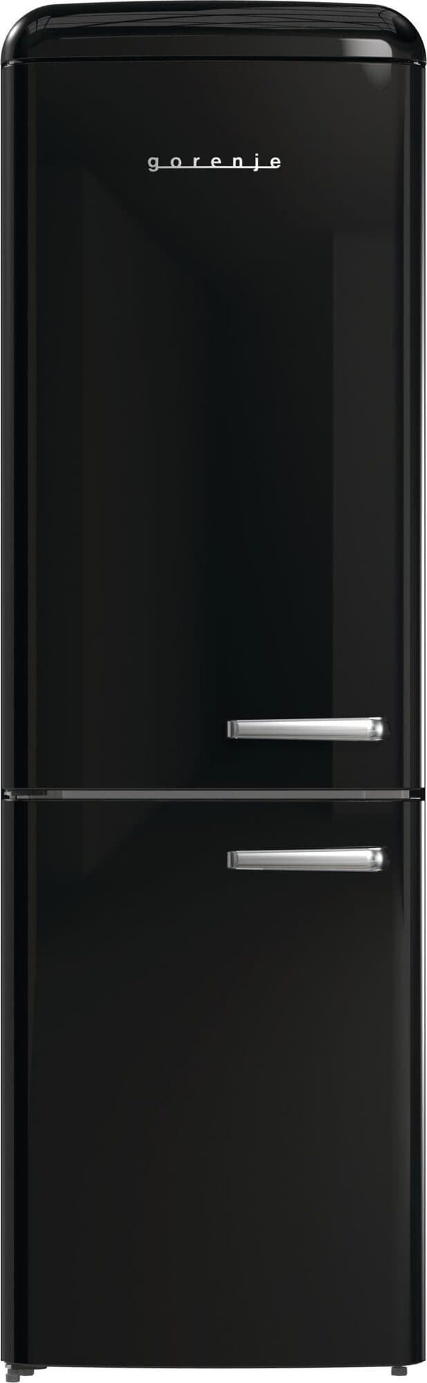 Gorenje Retro-kolleksjon, kombiskap, 194 x 60 cm, svart. Energiklasse D. NoFrost Plus for å forhindre isdannelse i fryserrommet. LED-display. 300 liter (204/96). 38 dB. IonAir med MultiFlow360 for å unngå vond lukt i kjøleskapet. AdaptTech som forstår deg og tilpasser seg etter dine vaner. CrispZone med Humidity Control for frisk frukt og grønnsaker. Venstreåpning