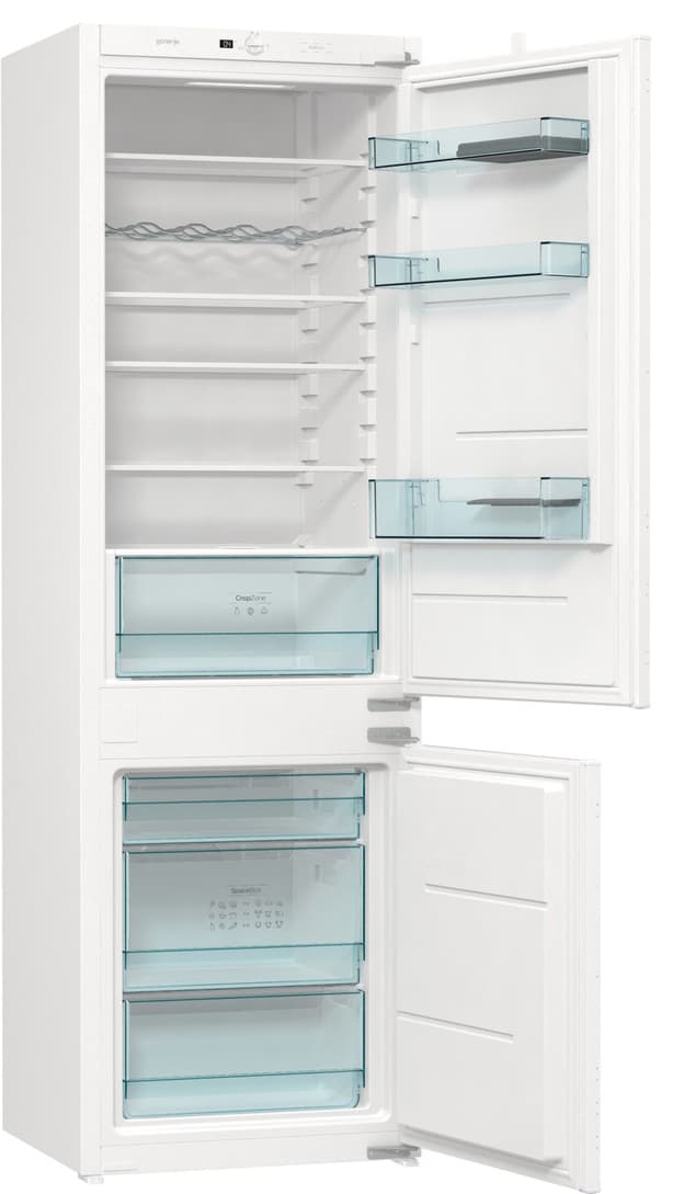 Oppbevar maten din i et pålitelig Gorenje kombiskap NRKI4182E1 med generøs kapasitet og praktisk LED-lys. Det innebygde kombiskapet holder frisk frukt og grønnsaker lenger fersk takket være CrispZone med dens gunstige oppbevaringstemperatur og fuktighetsnivå. Med NoFrost DualAdvanced kan du si farvel til manuell avriming, siden denne teknologien holder fryseren din fri for frost.