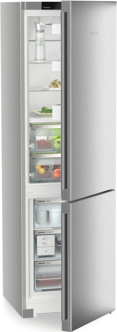 Liebherr Plus CBNsfc 57vi-22 001 kjøleskap/fryser i elegant stålfinish tilbyr Wi-Fi-tilkobling, effektiv luftsirkulasjon og NoFrost-teknologi med romslig bunnfryser, høyrehengslet reverserbar dør og kompakte mål på 201,5x59,7x67,5 cm.Les mer om produktet