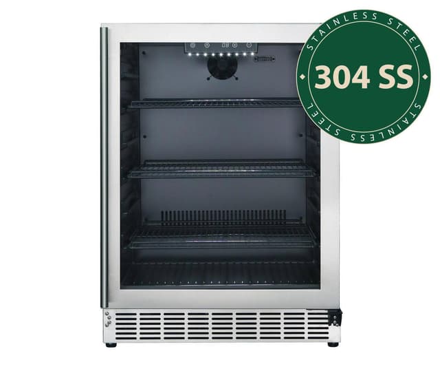 • Eksklusiv og stilren utførelse i rustfritt stål • Oppbevar mat og drikke på armlengdes avstand på utekjøkkenet • Høy kvalitet i rustfritt stål 304 SS • Innbyggbart utendørs kjøleskap • Kapasitet: Kjøleskapet har et volum på 145 l • Justerbar temperatur 0-10 °C • Vanntett konstruksjon • Enkelt å montere og installere • Dør med tredobbelt glass • Rustfritt håndtak • Elektronisk temperaturmåler • Digitalt betjeningspanel • LED-belysning som gir en stemningsfull atmosfære på kveldstid • 3 justerbare trådhyller • Automatisk avriming • Kjøleskapet har en meget høy kjøleevne og kommer raskt ned i ønsket temperatur • Regulerbare føtter • Innvendig utførelse i svart plast - enkelt å tørke av og rengjøre • Mål (Bredde x Høyde x Dybde): 59,5 x 87 x 57,5 cm (uten håndtak) • Vekt: 42 kg