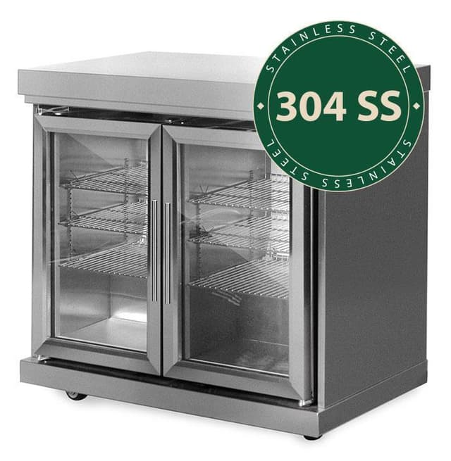 Frittstående modul kjøleskap med dobbeldører i rustfri finish. Kjøleskapet har kompressorkjøling og kan holde ned til 3°C. Passer perfekt inn i utekjøkkenet!