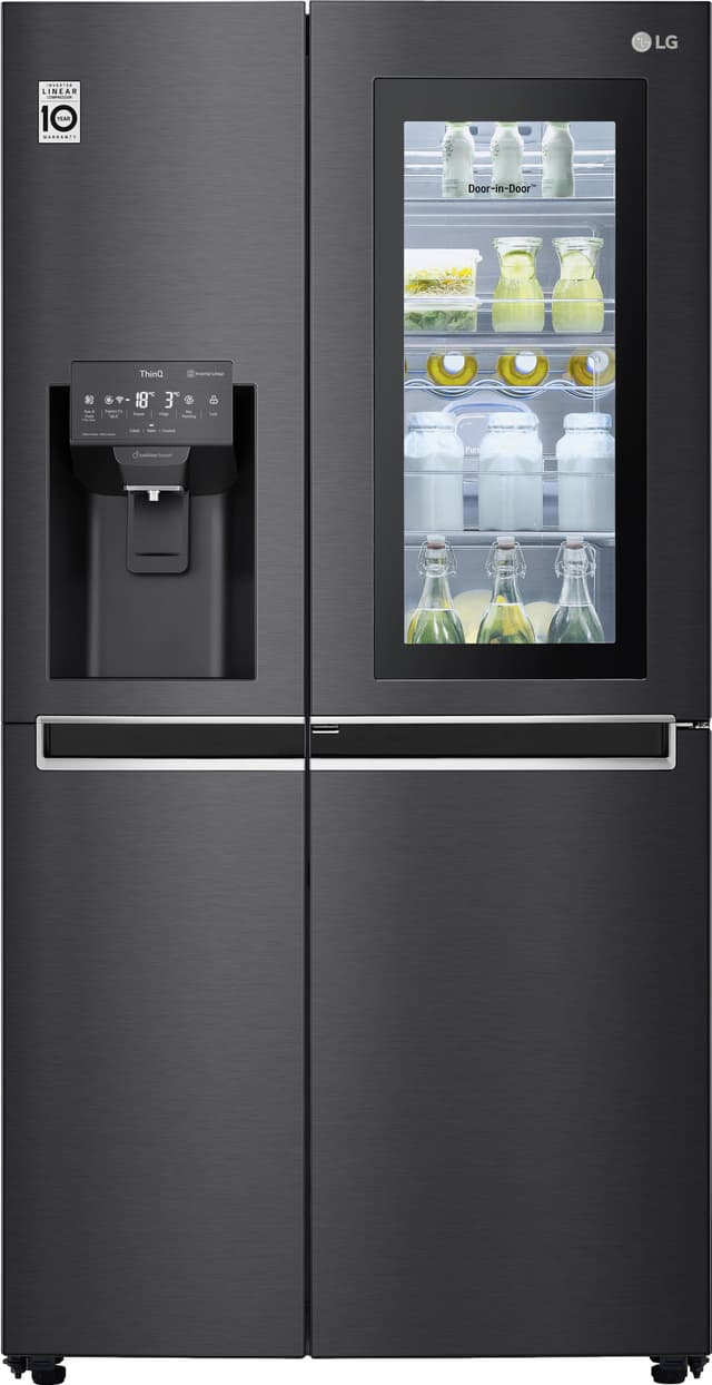 LG InstaView kombiskap er utstyrt med en rekke smarte funksjoner som DoorCooling, NoFrost og InstaView Door-In-Door seksjon. Det har en god totalkapasitet på 625 liter, samt WiFi for enkel fjernstyring via smarttelefon ved hjelp av LG SmartThinQ-appen.