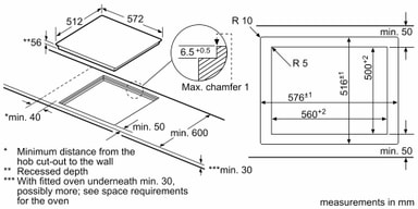 - Nødvendig størrelse på nisjen (HxBxD mm): 56 x 576 x 516