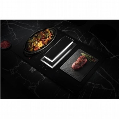 Bordintegrert platetopp med ventilator og ljus, Endast til extern motor, startsett av ventilasjonskanaler inkludert, 78 cm, mulighet för å montere avtrekk mot høyre eller venstre, fingertouch betjening, kompatibel med alle Silverline externe motorer