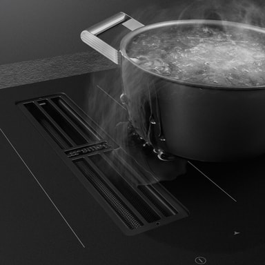 Den integrerte ventilatoren tilpasser seg automatisk etter koketoppens effekt og sikrer alltid optimal utsuging - stille, effektivt og helt uten manuell justering.