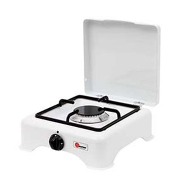 Parker er et portabel frittstående emaljert kokeapparat med 1 bluss for plassering på benk. Lokket beskytter veggen mot søl.