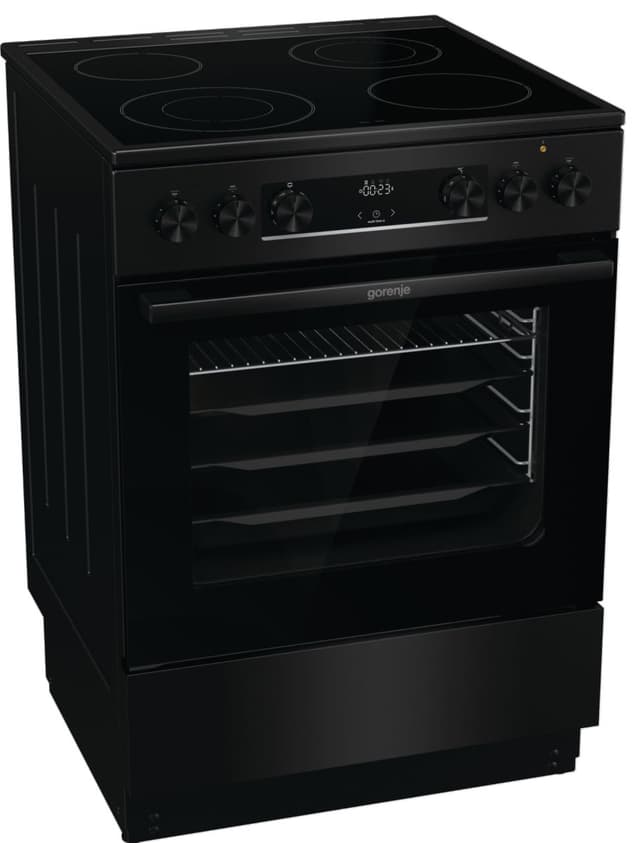 Med Gorenje keramisk komfyr GEC6C61BMB får du en moderne, komplett komfyr med en keramisk platetopp i glass med fire kokesoner og en elektrisk stekeovn på 71 liter. Komfyren har fokus på praktisk bruk og mange valgmuligheter, noe som gjør at du kan nyte godt av din egen matlagingsstil, samtidig som barnesikringen og den tredoble glassdøren sørger for at alle som bruker komfyren er trygge.