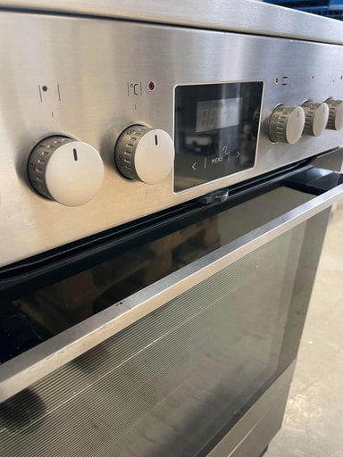 Induksjonskomfyr med pyrolyse i rustfritt stål. Multifunksjonsovn med 11+1 funksjoner og steketermometer. Pyrolyserengjøring med 3 programmer. 4 induksjonskokesoner, punktinduksjon og booster på alle kokesoner.