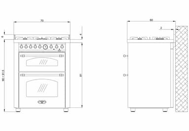 Komfyr - Dolce Vita 70 cm (2 ovner) (Svart/Bronse) Gass