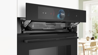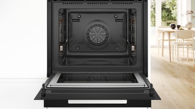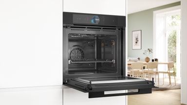 Den integrerte mikrobølgeovnen med digital kontrollring og TFT-touchdisplay, PerfectBake Plus, PerfectRoast Plus og tilsatt damp, Home Connect for kontroll via appen.Les mer om produktet