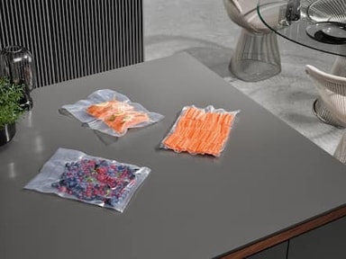 Ved å trekke ut luft og oksygen kan også maten forberedes optimalt for sous-vide-matlaging i dampovn. Samtidig kan du porsjonere, lagre, marinere og forsegle fisk, kjøtt og grønnsaker i vakuumposer. En annen fordel: For å maksimere holdbarheten bør matvarene fryses etter vakuumering – vitaminer og smaker blir godt bevart og frysetørking unngås. I tillegg sparer du plass i fryseren.