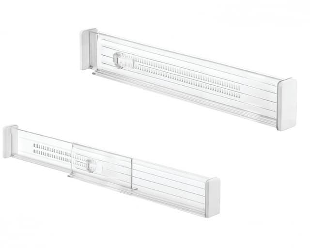 Geniale skuffeavdelere som er ideelle for å lage mer plass og skape rom i skuffer. Siden de er justerbare kan de brukes overalt i hjemmet. Den har en myk padding på siden for å forhindre riper, og gjør også at den ikke glipper. Den er 6.4 cm i høyde og kan justeres fra 34.6 cm til 52.7 cm. Laget at slitesterk plastikk som ikke kommer til å sprekke eller brekke. iDesign er markedsledende på organiseringsprodukter til hus og hjem. Produktene selges i over 100 land. De kombinerer praktiske enkle design med høy kvalitet.
