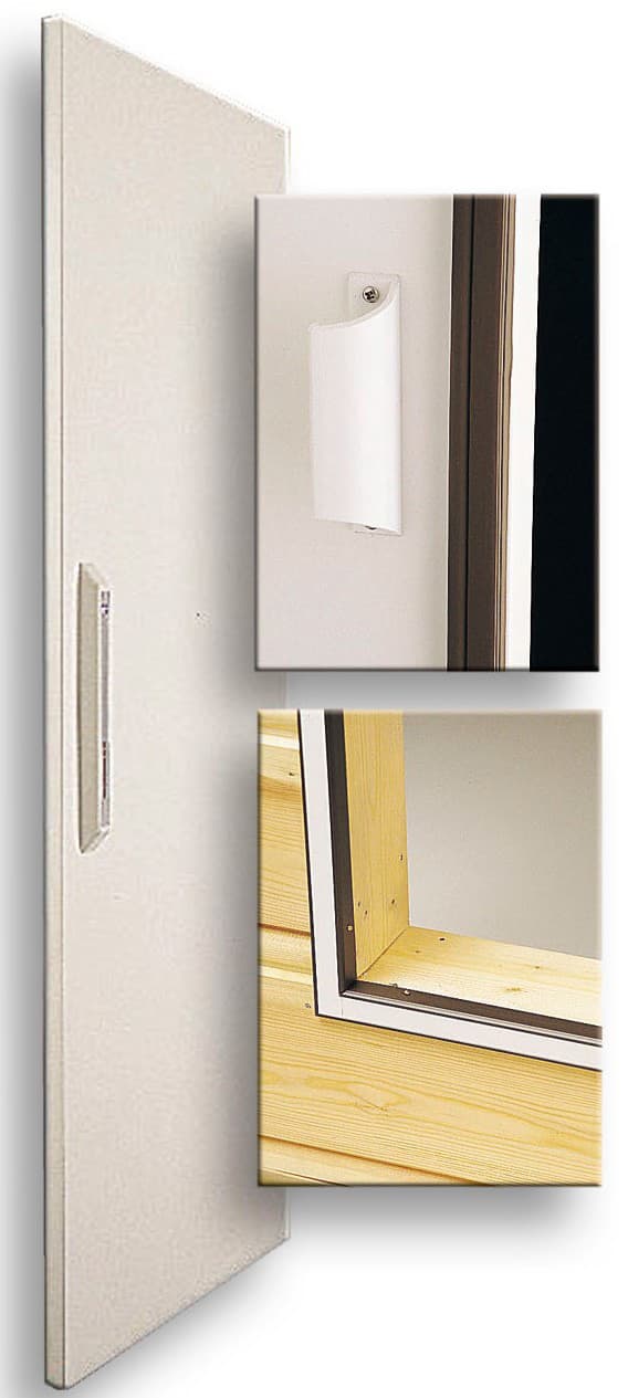 Denne døren er utenpåliggende og magnetlisten gir god tetning av døren.