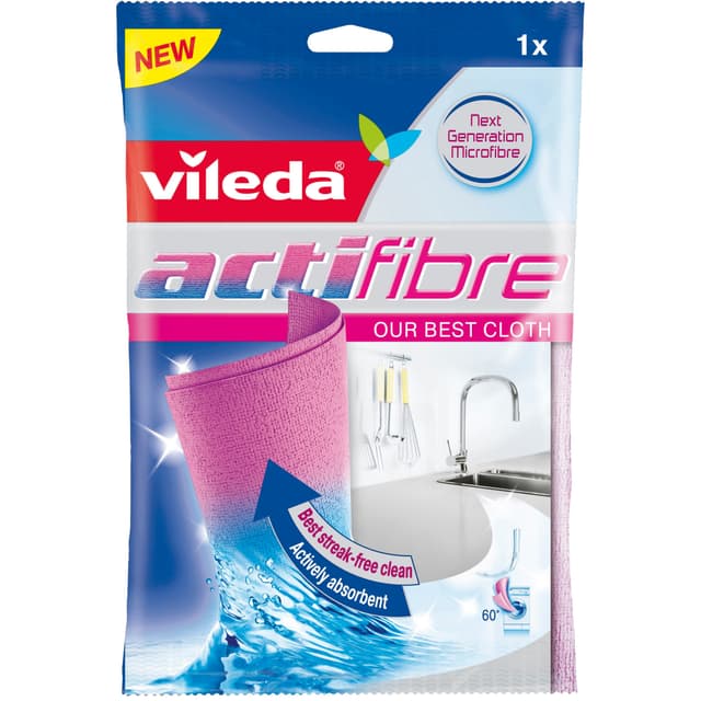 Gjør overflatene på kjøkkenet helt rene igjen, med Actifibre kluten fra Villeda. Kluten har en ideell absorberings- og rengjøringsevne, og vaskes i vaskemaskinLes mer om produktet