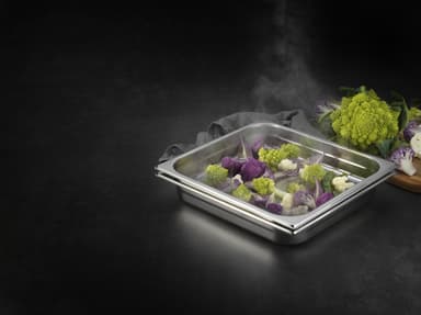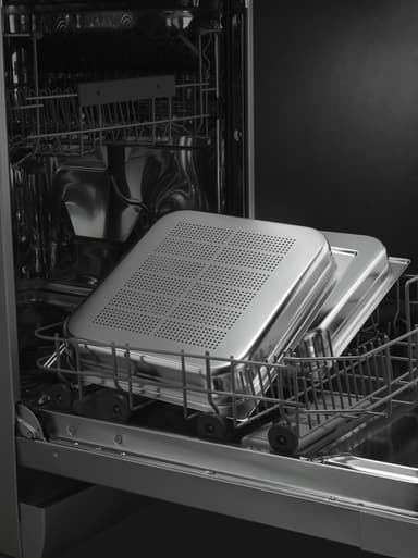 AEG Large Professional Dampsett for ovner med full damp. Rustfritt stål i høy kvalitet for dampmatlaging. Inneholder 1 perforert panne og 1 tett panne, H: 55m / B: 325 mm / d: 354 mm.Les mer om produktet