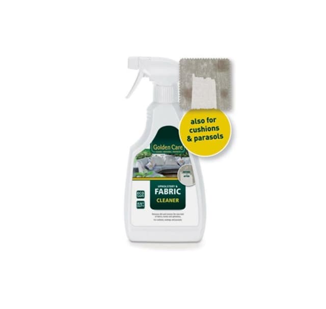Golden care fabric cleaner rengjør tekstiler, puter og parasoller, og fjerner flekker og skitt på en skånsom måte. Golden cares produkter en vannbaserte og inneholder ingen skadelige løsemidler