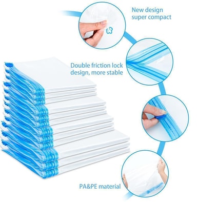 Vakuumoppbevaringsposer klesposer for håndrulling egnet for klær, sengetøy og mye mer.