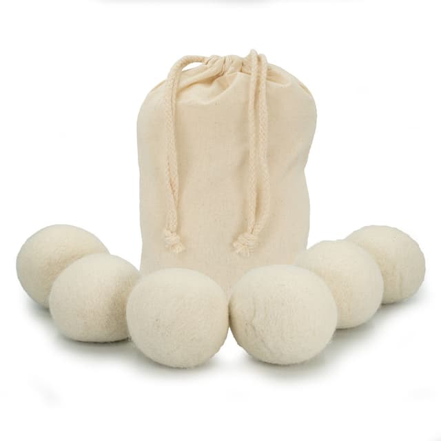 6-Delt sett med og kjemikaliefrie tørketrommelkuler som tørker raskt og effektivt.