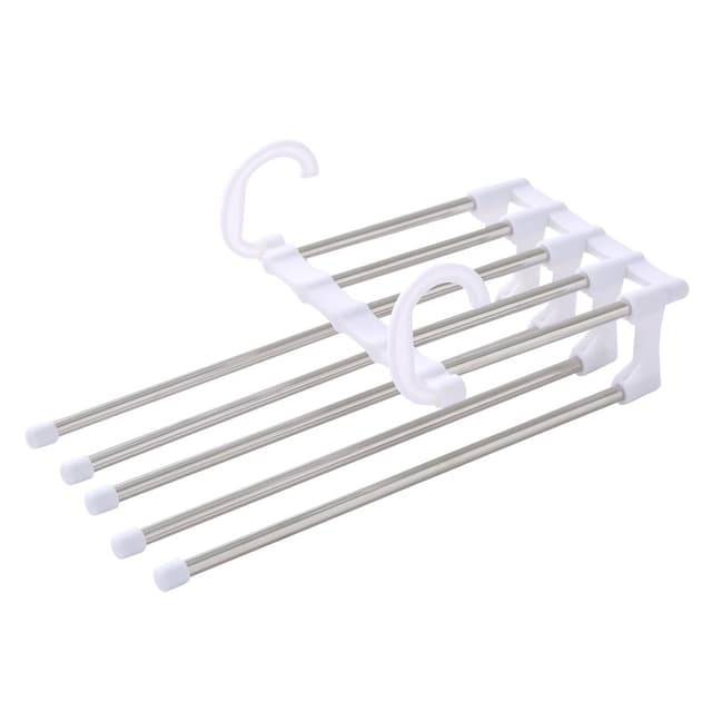 Designet for 5-lags buksehengere. Denne hengeren har plass til minst 5 bukser eller andre klær, Maksimer for å spare plass i skapet og holde det rent og ryddig. Sterk bæreevne og vil ikke gå ut av form.