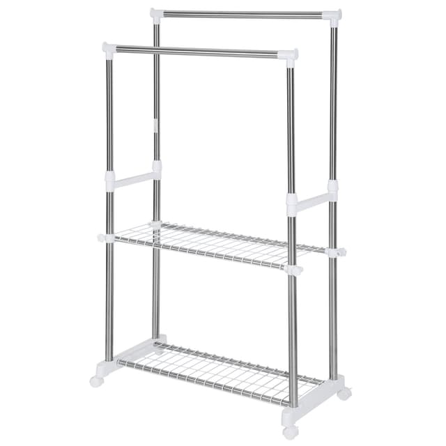 Uansett om den skal brukes på soverommet, stuen, klubbrommet eller på kontoret er dette klesstativet alltid et bra valg. Det praktiske klesstativet kan med sine lettrullende hjul raskt og enkelt stilles på rett plass. Klesstangen kan justeres individuelt i høydeposisjon, slik at også ekstra lange plagg kan oppbevares uten rynker og smuss. Monteringen gjøres lynraskt med noen enkle håndgrep. Det slanke og plassbesparende garderobestativet har en optimalt tilpasset design.