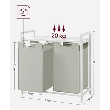 • Praktisk Skittentøyskurv med Sortering - To Rom, Oppbevaringshylle, Hvit