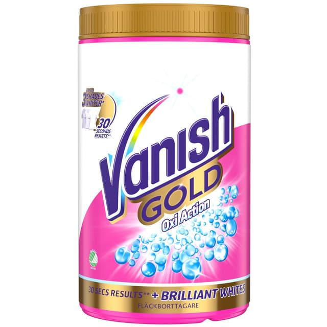 Sørg for at det lyse tøyet ditt forblir lyst i lang tid med vaskemiddelet Vanish Oxi action Crystal white Gold.