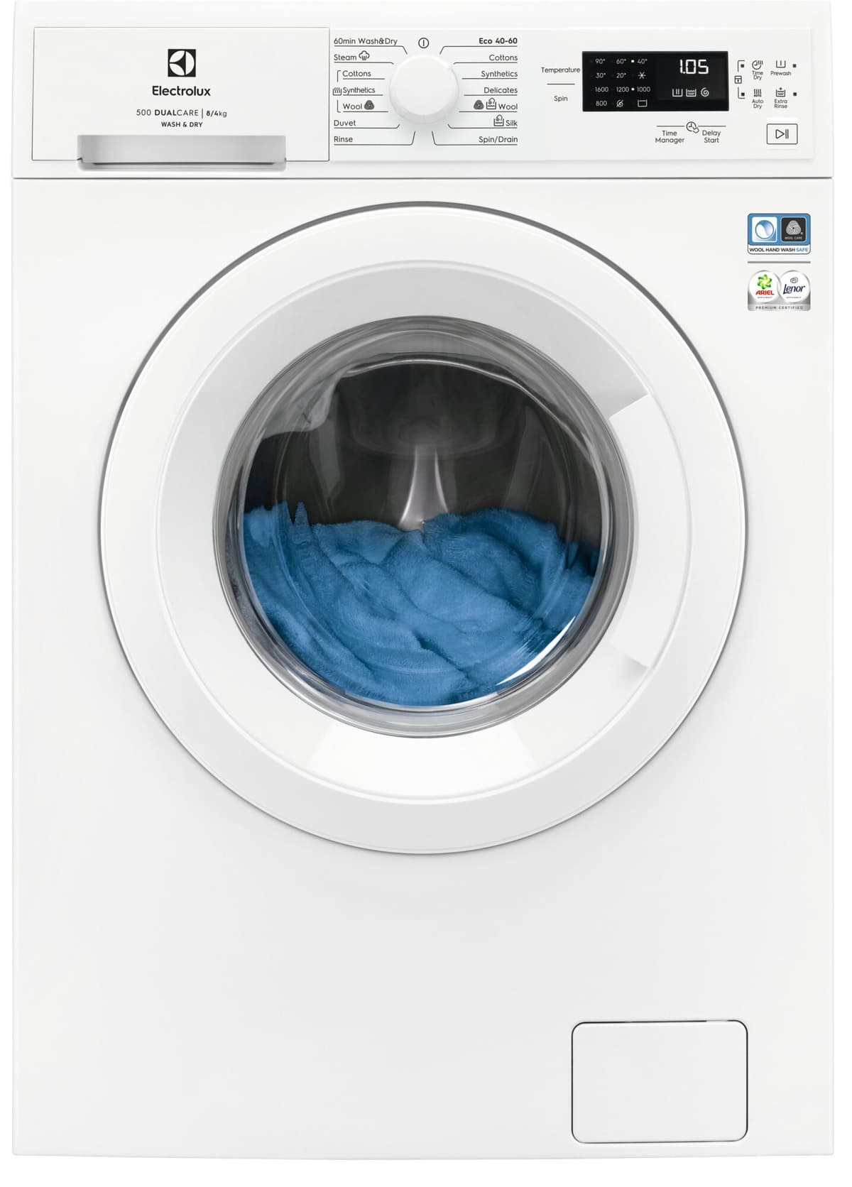 Electrolux DualCare™ vask-tørk-søyle lar deg vaske og tørke klærne dine på én gang. Med programmer for alle typer tekstiler, inkludert ull og finvask, kan du trygt vaske og tørke favorittklærne dine gang på gang.Les mer om produktet
