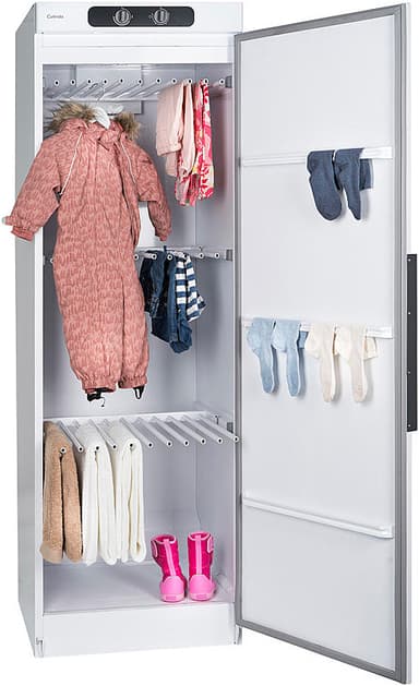 Cylinda tørkeskap TS2190VVIT tar vare på hele familiens klær og sko takket være 6 kg kapasitet, tre uttrekkbare stenger og 3 hyller i døren. Still ganske enkelt inn timeren og vent på at klærne blir tørre.Les mer om produktet