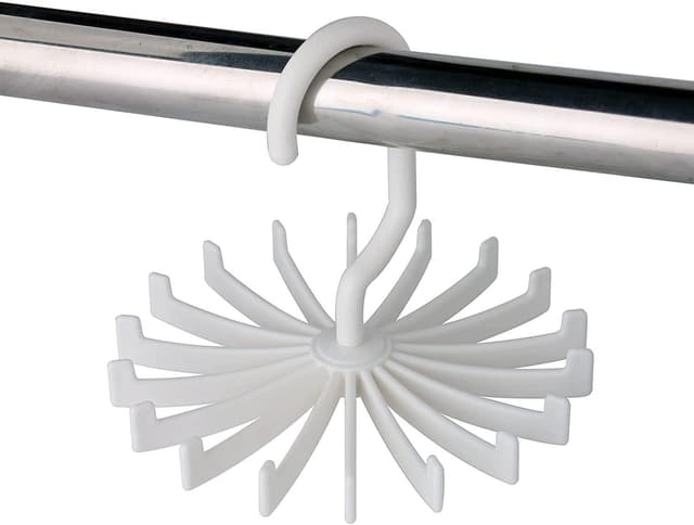 Robust kleshenger laget av PP-plast. Klesoppbevaringen henges over garderobestangen som en vanlig kleshenger og har 18 kroker til å henge klær og tilbehør på. Kan roteres 360 grader slik at du enkelt kan velge plagg.
