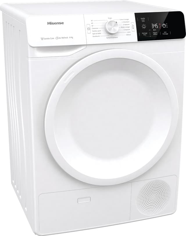 Med en Hisense tørketrommel vil klærne dine få en frisk følelse uten rynker takket være flere programmer spesialisert for spesifikke materialer, inkludert en AntiCrease-syklus. Den galvaniserte trommelen tilbyr skånsom men effektiv behandling, og en LED-skjerm gir deg alt av info om tørkesyklusen.