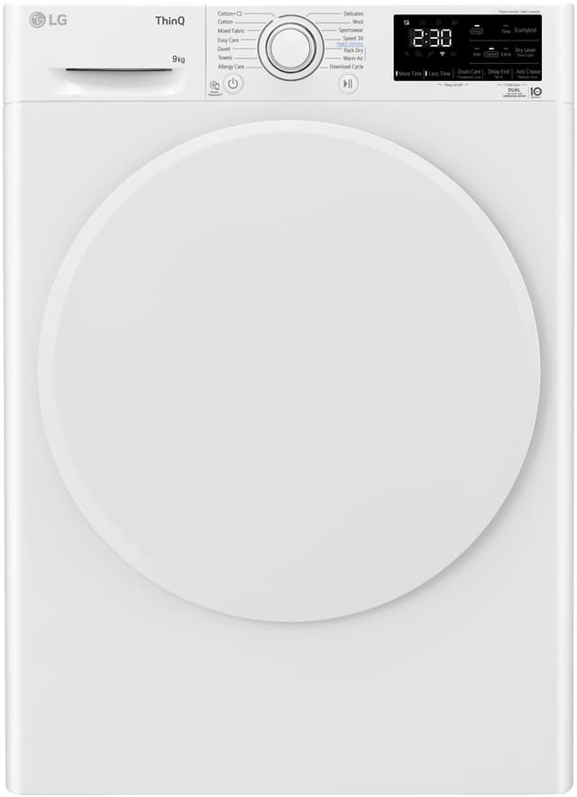Tørk klærne dine komfortabelt i ditt eget hjem. LG tørketrommel RV3DN9037 har flere praktiske programmer og utsatt start-funksjon for fleksibelt bruk. Takket være WiFi-tilkoblingen og en app kan du justere tørkeprogrammene fra hvor som helst.