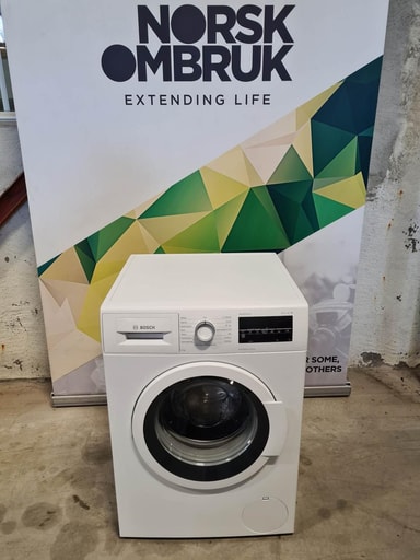 Dette er en frontmatet vaskemaskin fra Bosch som vil vaske tøyet ditt på en rask, stillegående og effektiv måte.