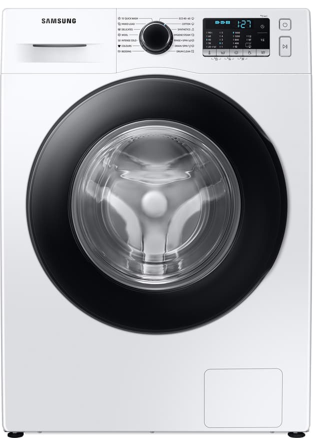 1. Vaskemaskin Samsung WF80F5E5U4W med 4 kg tøy og programmet «Wash Load, Super Eco Wash cold» med EcoBubble sammenlignet med