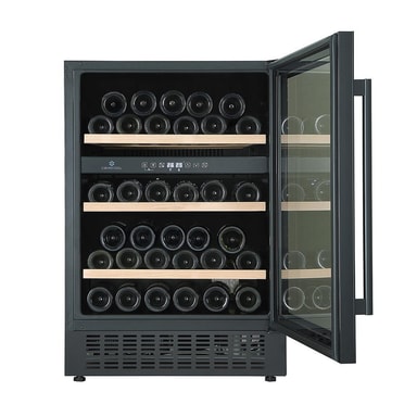 I denne nye modellen får du et elegant vinskap med to kjølesoner (begge soner 5-22°C, men temperaturen i den nederste sonen må være minimum 5-6 grader høyere enn i den øverste sonen), svart glassdør med UV-fritt glass og plass til 46 flasker (Bordeaux).